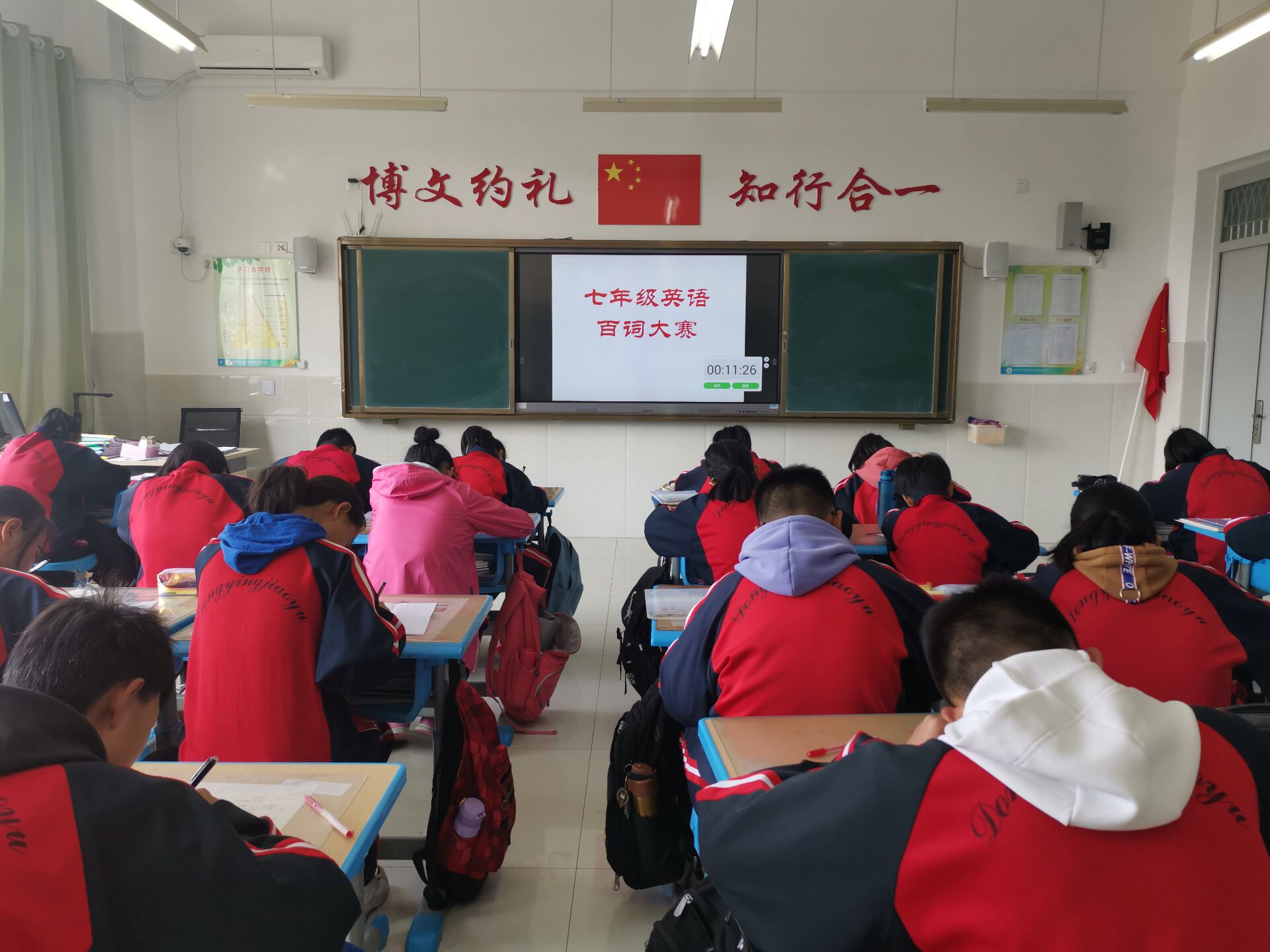 为增强学生们学习英语的兴趣,营造积极向上的英语学习氛围。2019年4月11日,我校初中部英语组组织6-9年级学生举办英语百词大赛。