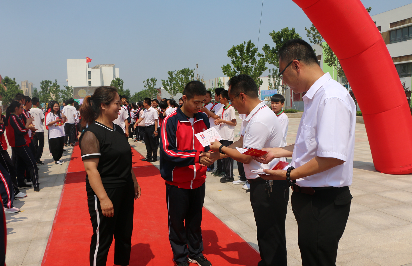 活动在庄严的国歌声中启幕。观看成长视频,回顾成长历程,再一次见证学生的成长点滴;师生代表的诗朗诵《在此刻》,分别从学生、教师的视角回顾了往昔岁月,并给未来以期冀。随后,陈飞主任宣读毕业生名单,宋团辉主任宣读表彰决定,家委会主任张培钦、赵文刚校长分别为优秀学生代表颁奖,给予最诚挚的肯定。