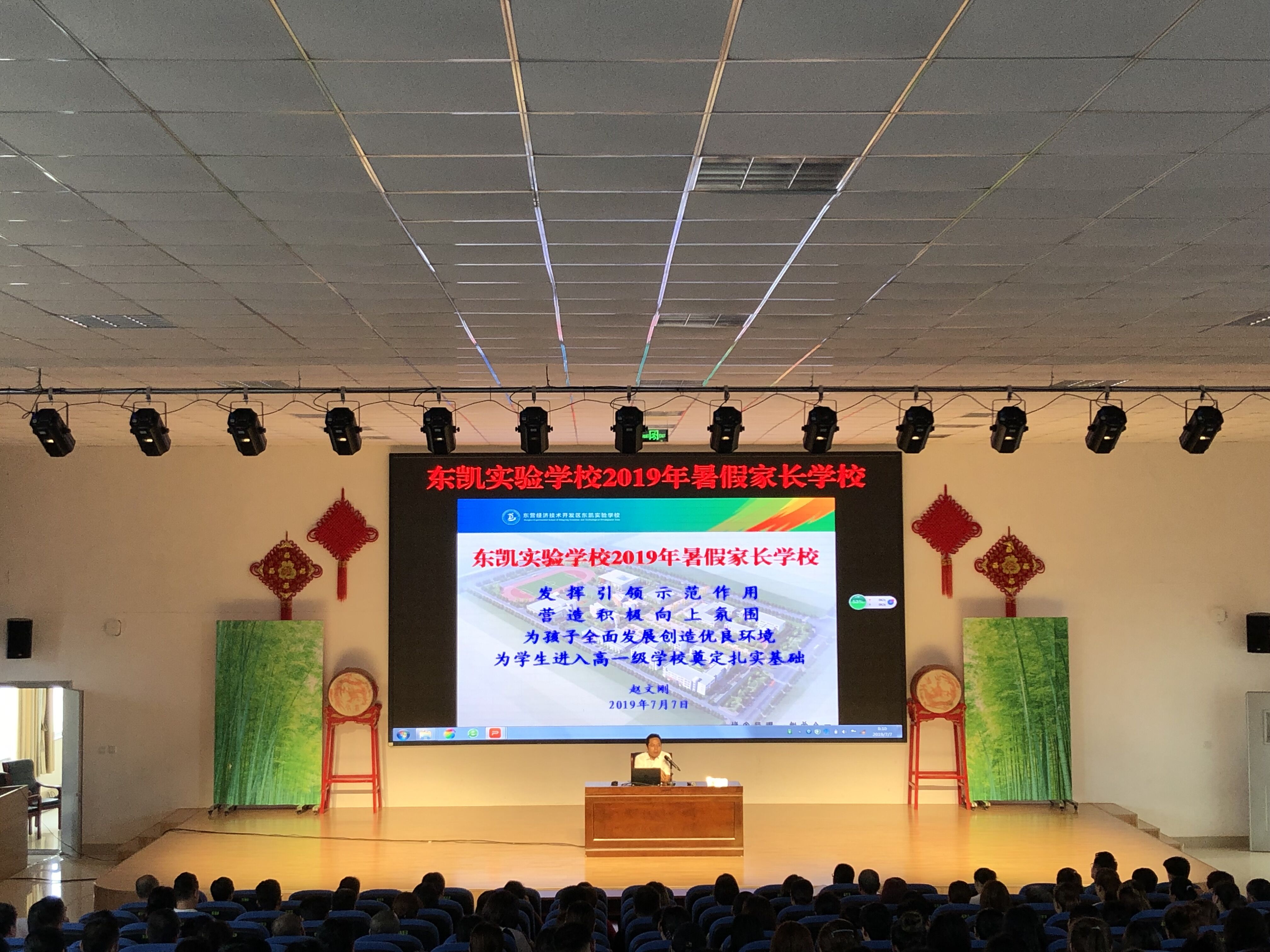 为进一步促进学校与家庭、教师与家长的沟通交流,使家长了解孩子在学校的学习生活情况,从而更好地形成家校教育的合力,2019年7月7日上午在我校敏行楼报告厅举办了2019年暑期家长学校活动。本次活动由陈飞主任主持,赵文刚校长做了“把学校办成学生的能量场”重要主题报告。