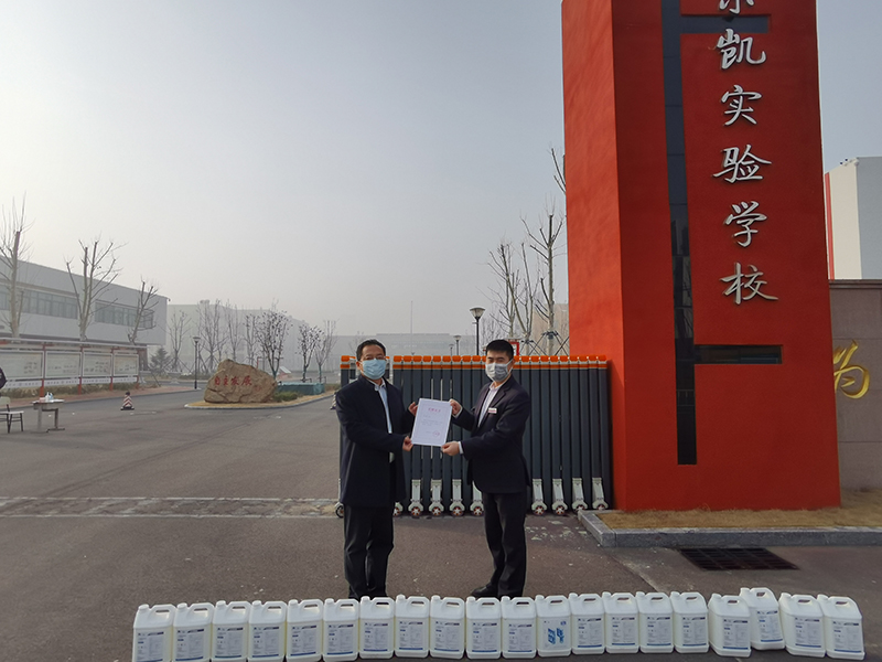 在防控新冠肺炎疫情的关键时刻,3月2日上午,东凯实验学校二年级三班罗一涵学生家长向学校捐赠20桶84消毒液,用自己的暖心行动表达了对学校防疫工作的的支持。
