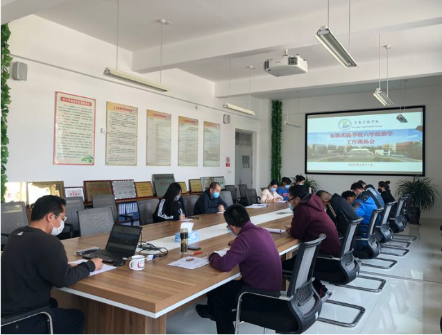 会议由六年级级部主任李荣涛老师主持,李主任详细介绍了六年级开展线上教学以来的工作进展情况。各学科教师,结合自身线上教学实际,在发现前一阶段线上教学中问题的基础上,结合自己的教学情况提出解决办法,大家共同取长补短,共同进步。陈飞主任针对各位教师线上教学中的优秀做法进行点评与总结。赵文刚校长亲临现场,听取每位教师发言,并对六年级线上教学情况提出指导性意见。