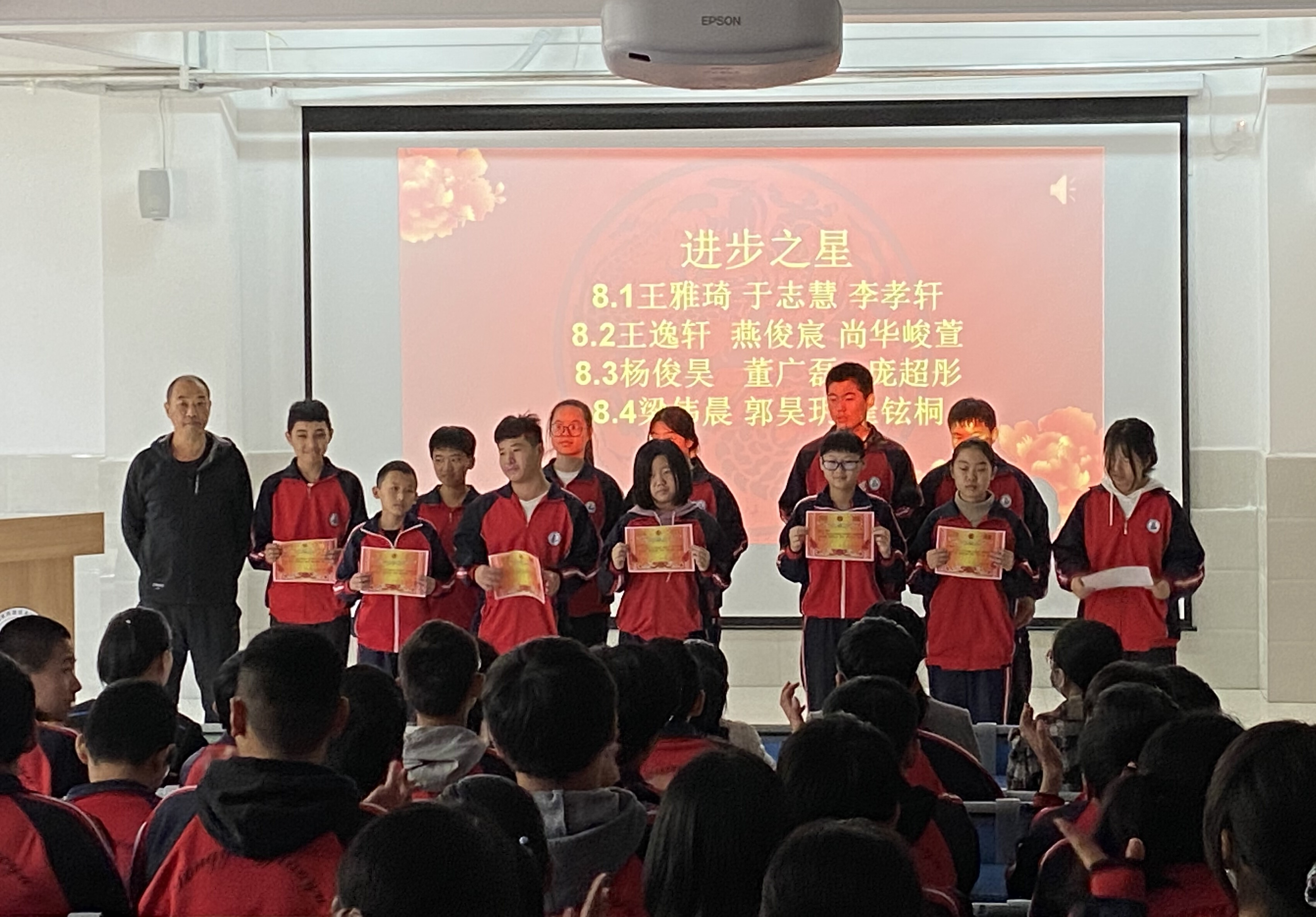 10月30日上午,我校八年级举行了本学期第一次阶段性质量检测表彰大会。本次大会旨在激励学生在学习中不断进取、奋发向上、立志成才,培养学生优良、坚毅的品格,推动形成“比学赶帮超”的良好学习氛围。级部全体师生参与了此次大会。