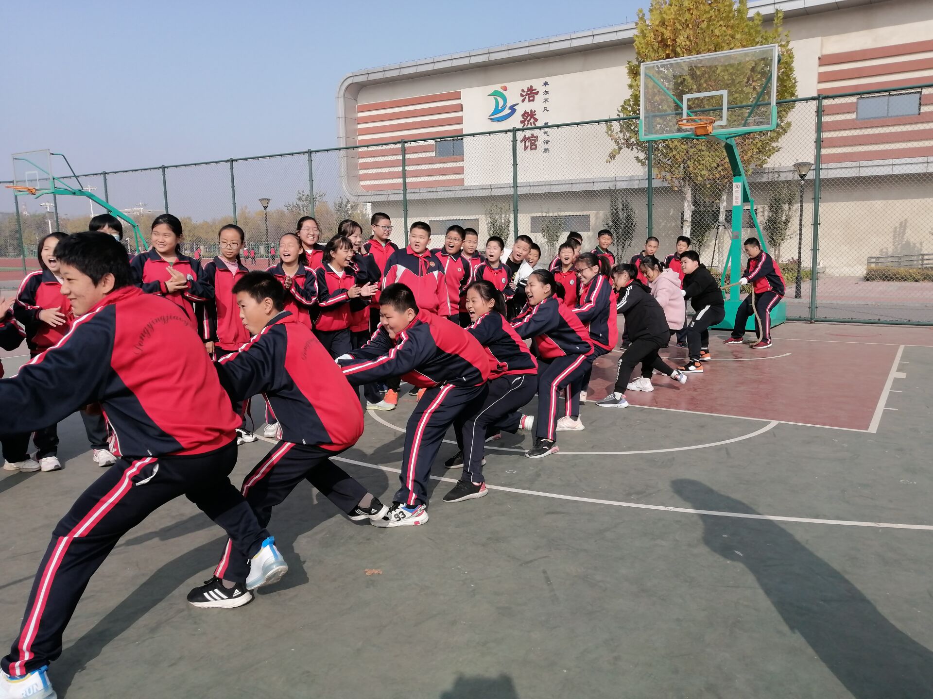 为了丰富学生的课余文化生活,增进学生之间的交流,培养学生的班级荣誉感,10月29日,我校六年级组织开展了一场别开生面的拔河比赛。