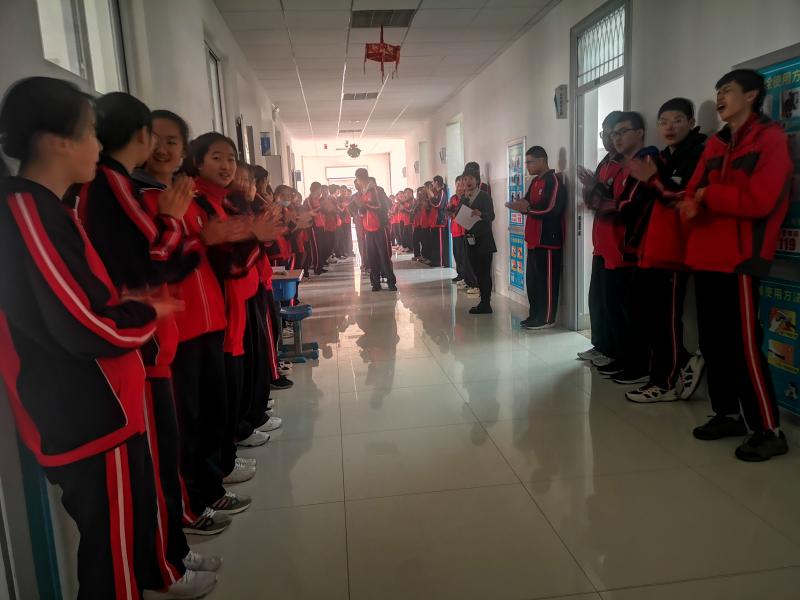 训导会主要分周周清测试反馈、优秀学生“走红毯”、班级互动制定新的学习目标三个环节进行。周周清测试反馈环节,亓美主任就级部整体测试情况进行了反馈,并及时指出问题,提出建议;优秀学生“走红毯”环节,优秀之星、进步之星、优秀学习团队,分别以路队行进的形式,在走廊与各班学生进行互动,相互鼓励;班级互动环节,各班根据上一周周周清情况制定新的学习目标,并在各班级间形成竞争团队。