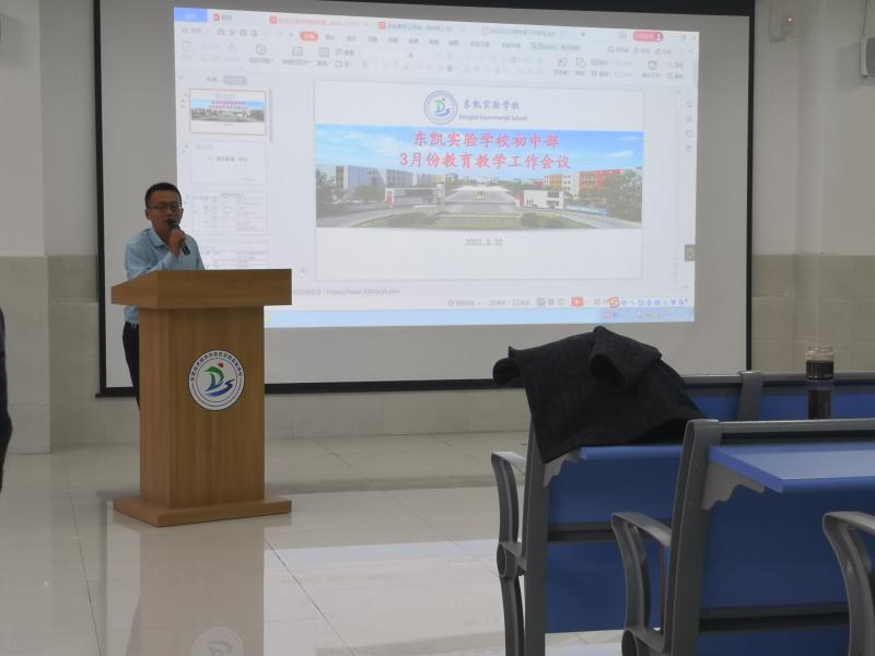 3月22日下午,我校初中部于博文楼一楼合班教室组织召开了三月份教育教学工作会议。初中部全体教师参会,初中课程教学部李鹏飞主任主持会议。