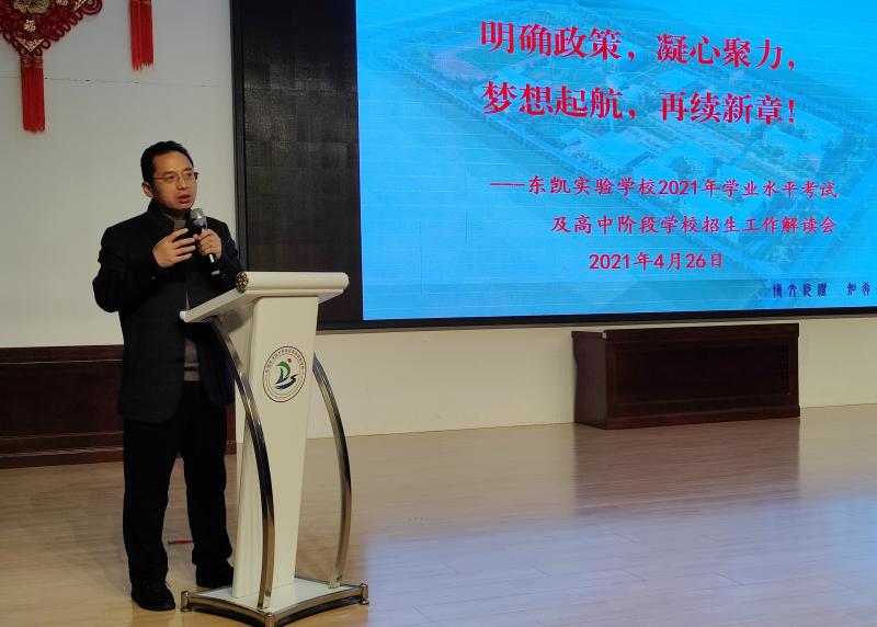 为帮助九年级考生及其家长准确把握今年的考试招生政策,4月26日下午,我校于敏行楼四楼报告厅组织召开了2021年学业水平考试及高中阶段学校招生工作解读会。我校九年级全体师生参会,初中课程教学部李鹏飞主任主持会议。