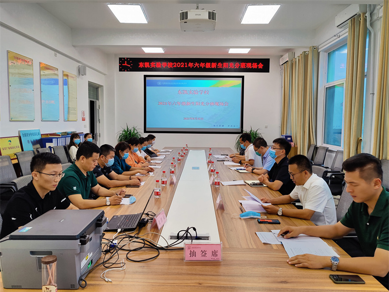 为进一步促进教育公平,规范学校办学行为,8月31日上午9:00,东凯实验学校于敏行楼二楼会议室对本学年六年级新生实行阳光分班。市教育局开发区分局基教科洪海科长,市政协委员、开发区教育分局特邀监督员、科达小学李江涛副校长,张铭宇家长等五名学生家长及教师代表参会,东凯实验学校党支部书记、校长赵文刚,东凯实验学校副校长宋团辉及全体六年级教师与会。课程教学部陈飞主任主持会议。