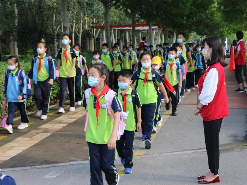 学生在教师、家长志愿者的引领下规范佩戴口罩、保持一米间距,有序测温入校。进入班级后,各班主任从疫情防控、党史学习、安全教育等方面对学生进行开学第一课主题教育,助力学生迈好开学第一步,走好人生每一步。