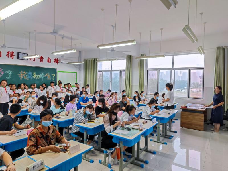 此次家长会,主要分两个会场进行。家长们经测温有序进入班级后,由班主任分别主持,进行班内家长会,与家长进行开学初的沟通与交流。紧接着,学生们依次在“开学了,我是初中生了”的板报上面签名,并与家长拍照留念,为自己的初中生活留下最初的生命印迹。