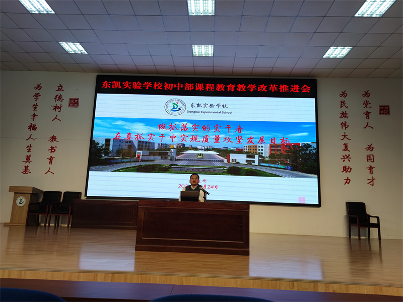 10月24日下午,东凯实验学校初中部全体教师在学校敏行楼报告厅召开了初中部课程教育教学改革推进会。赵文刚校长做了题为《做抓落实的实干者——在真抓实干中实现质量攻坚发展目标》的报告。