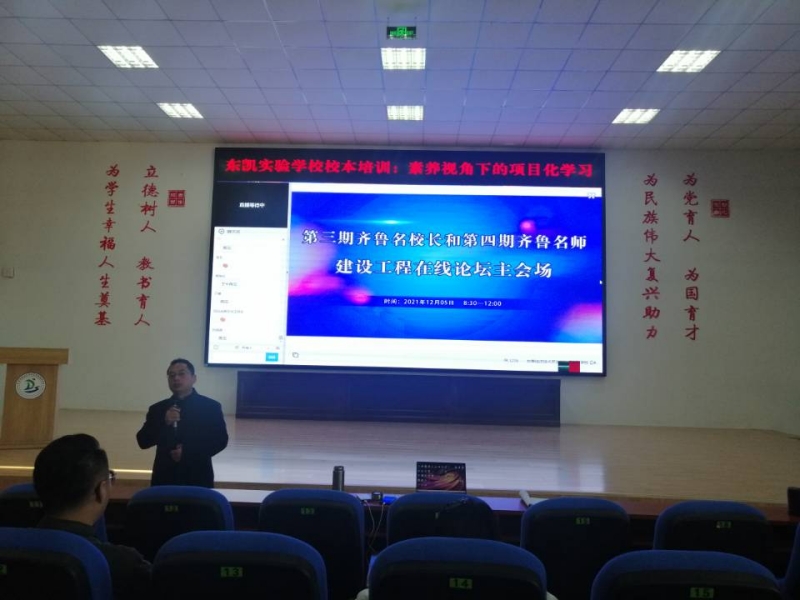 2021年12月5日,东凯实验学校组织全体教师参加了第三期齐鲁名校长和第四期齐鲁名师建设工程在线论坛活动,活动于敏行楼四楼报告厅举办。论坛主题为“双减”政策背景下的学校管理创新与课堂教学改革。