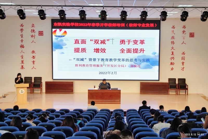 新年伊始,万象更新。2022年春季开学在即,2月12日,东凯实验学校在敏行楼报告厅开展春季开学教师培训系列活动,为新学期更好地开展教育教学工作蓄力,培训会由教师发展部谭敬敬主任主持。