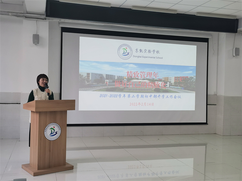 为落实学校精致管理年的总体要求,提升教育教学质量,2月14日下午,东凯实验学校初中部全体教师在博文楼一楼合班教室召开了新学期开学工作会议。会议由亓美主任主持,宋团辉副校长出席并讲话。