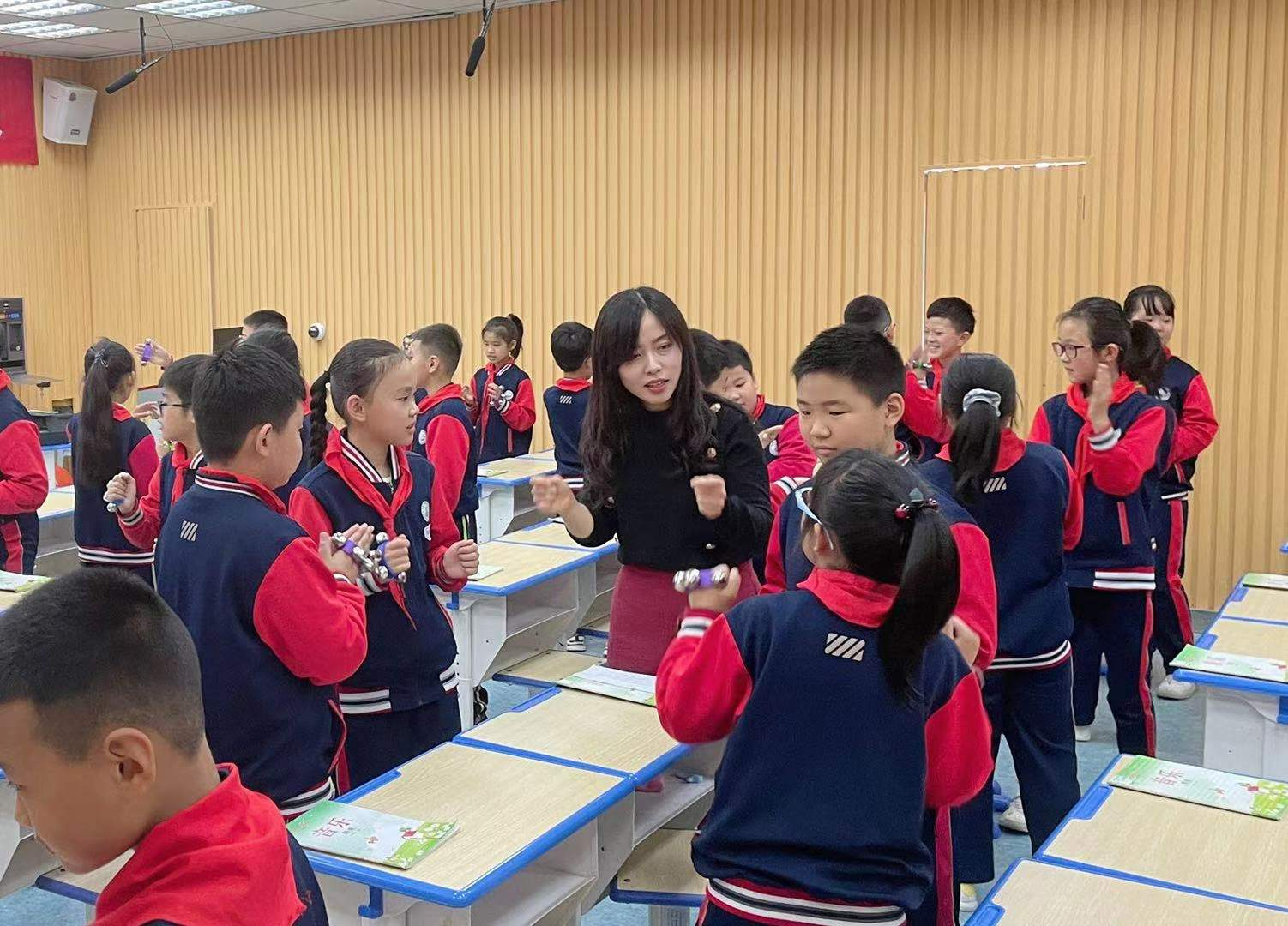 本次活动围绕了张娟主任执教的音乐课《侗家儿童多快乐》进行听课、说课、评课的研讨活动。课堂上,张老师用亲切的话语和真挚的情感带领学生走进音乐的世界,运用多种教学手段让学生感知音乐的变化,通过小组合作为歌曲创编动作实现了自主学习。整堂课的节奏由易到难、突破重点,由听到学、实现目标。