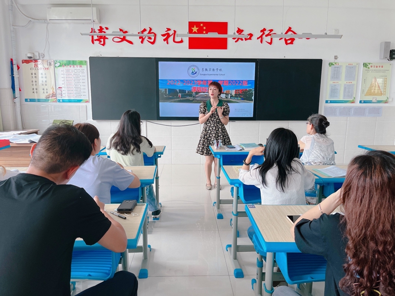 课程标准是国家对于基础教育课程的基本规范和质量要求,课程标准为教师的教学提供了根本的依据,是学校全面培育志趣高雅阳光学子的前提,是新学期新课程顺利开展的保障。为了贯彻落实 2022 版课程标准和实施精神,理解新课标的修订思路和内容变化,把握义务教育的改革方向,提升教师基于新课标和新理念的课程教学改革能力,切实把新课标的教育理念和基本要求落实到课堂教学中,8月24日,东凯实验学校初中部组织教师开展2022版课程标准的学习交流活动。