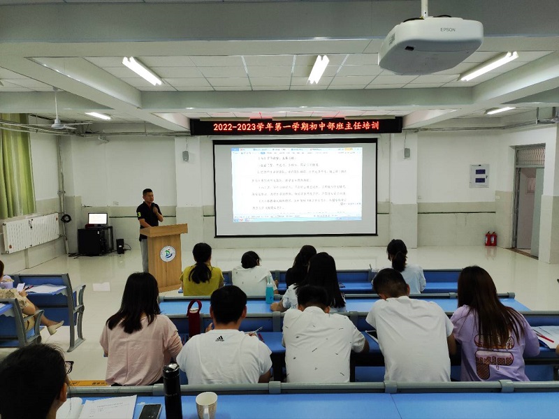 为提高班主任教师的师德修养和育人能力,根据山东省教育厅《2022年山东省中小学班主任全员培训实施方案》的指示精神,东凯实验学校初中部开学初组织全体教师开展了班主任全员培训活动。