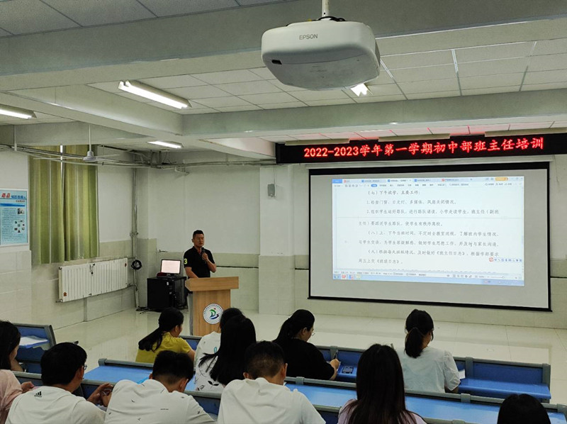 为提高班主任教师的师德修养和育人能力,根据山东省教育厅《2022年山东省中小学班主任全员培训实施方案》的指示精神,东凯实验学校初中部开学初组织全体教师开展了班主任全员培训活动。