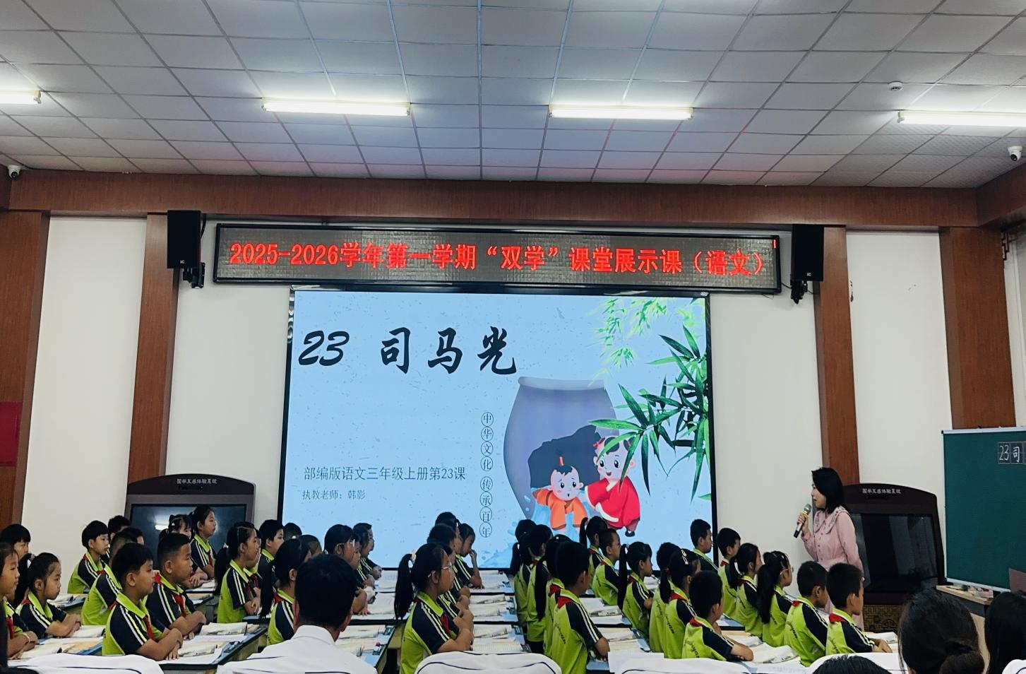 本次展示课由韩影老师执教,课程为部编版语文三年级上册第23课《司马光》。韩老师借助学历案、运用学共体,引领学生感知文言文的特点,感悟人物的美好品质,着力体现“双学”课堂建设。授课后,韩老师全面阐述了教学设计思路与“双学”课堂实施亮点。徐芷然、崔梦超两位老师结合课堂实际展开评课。
