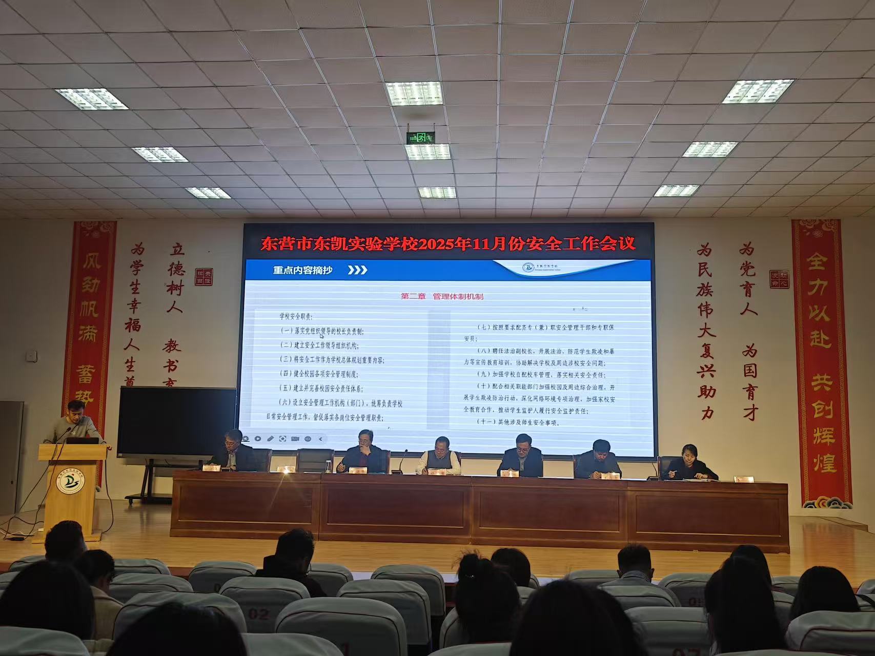 为进一步提升校园安全管理与应急处置能力,切实落实各级校园安全工作部署。11月26日,东营市东凯实验学校举行《中小学幼儿园安全指南》专题培训暨11月份学校安全工作会议。