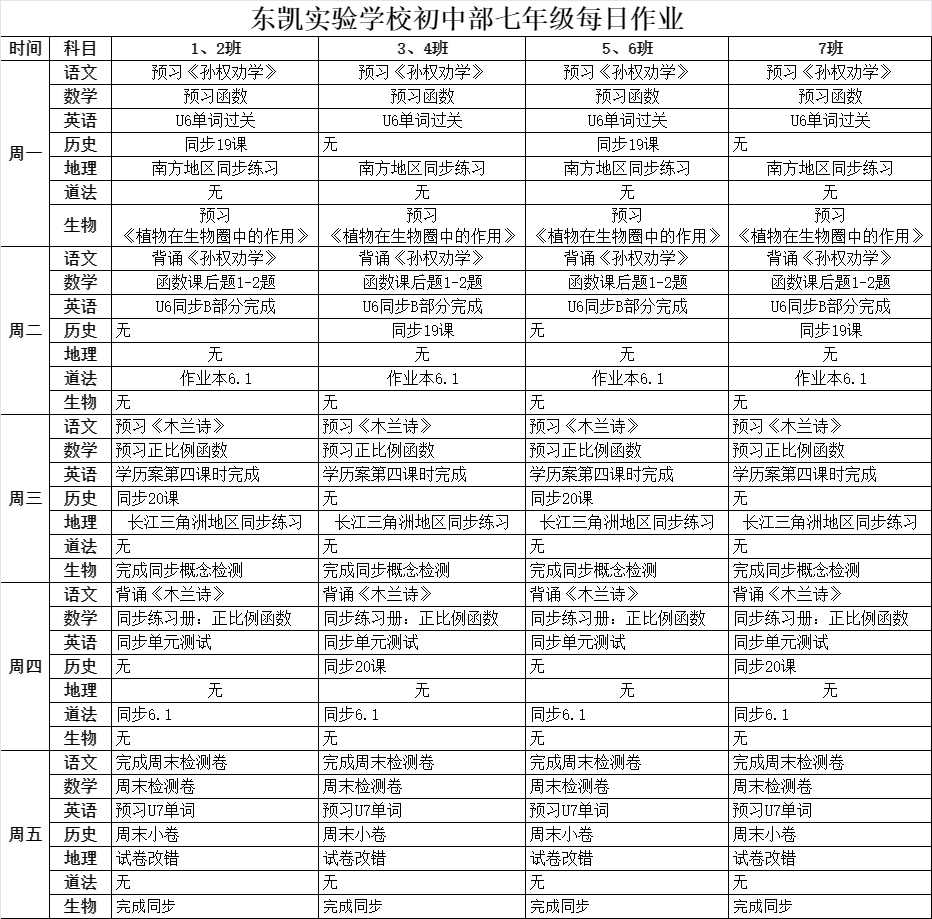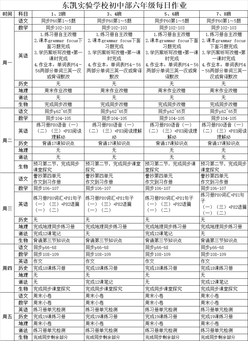 东凯实验学校初中部6-7年级第16周作业单