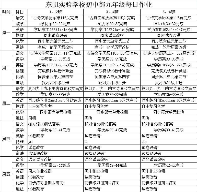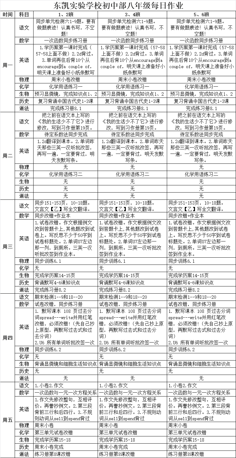 东凯实验学校初中部8-9年级第16周作业单