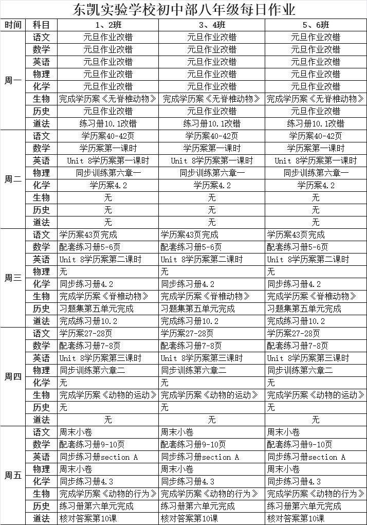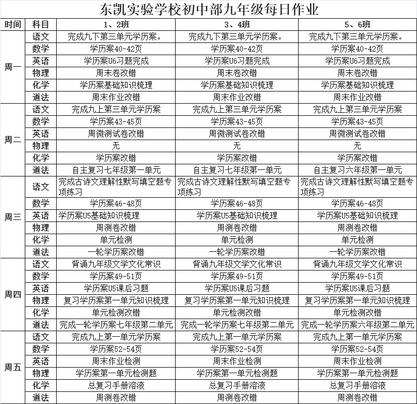 东凯实验学校初中部8-9年级第19周作业单