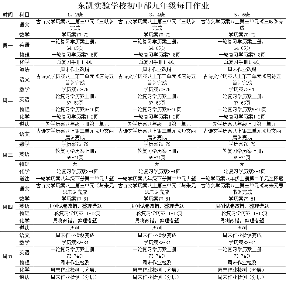 东凯实验学校初中部8-9年级第7周作业单