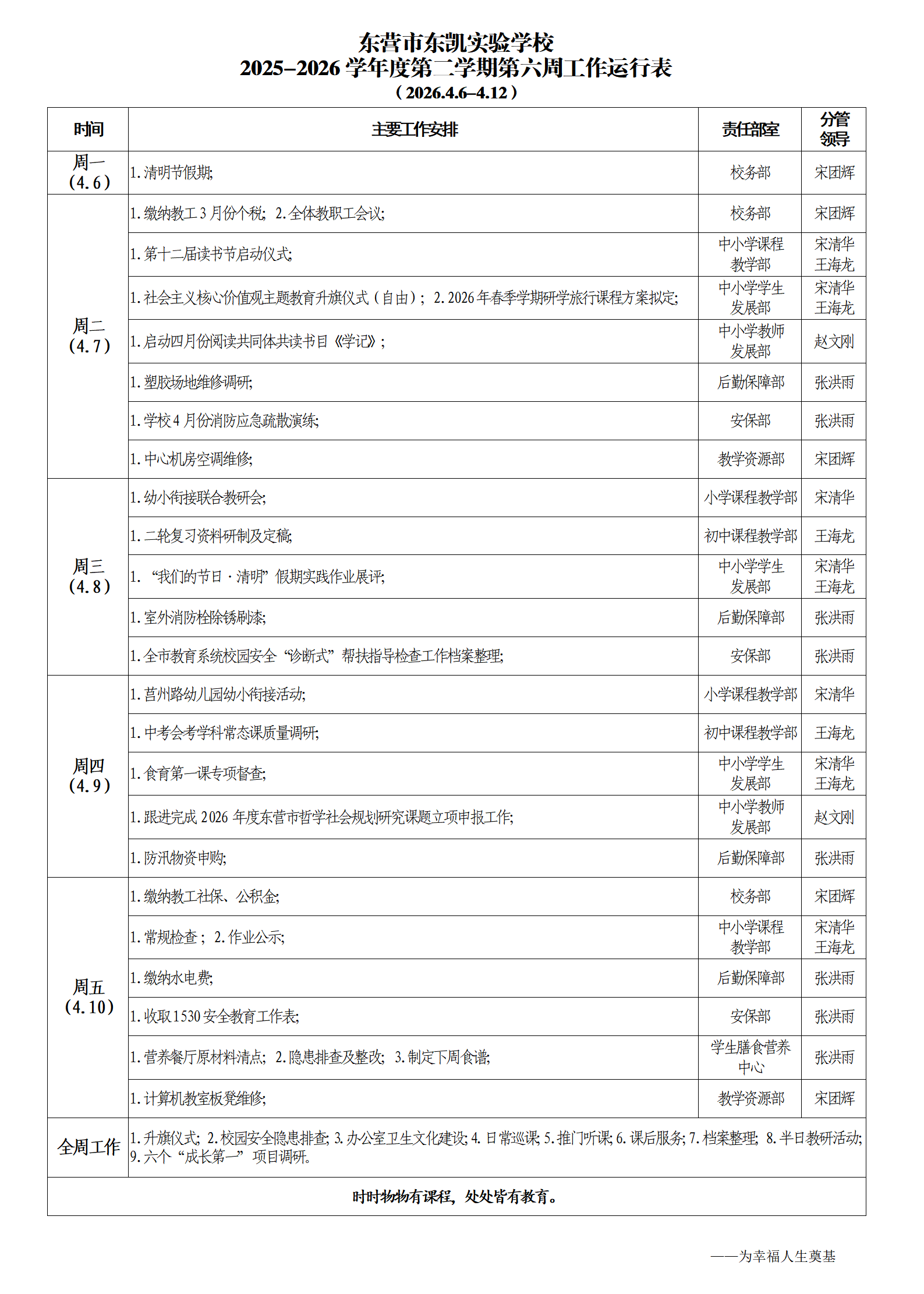东营市东凯实验学校2025-2026学年第二学期第六周工作运行表