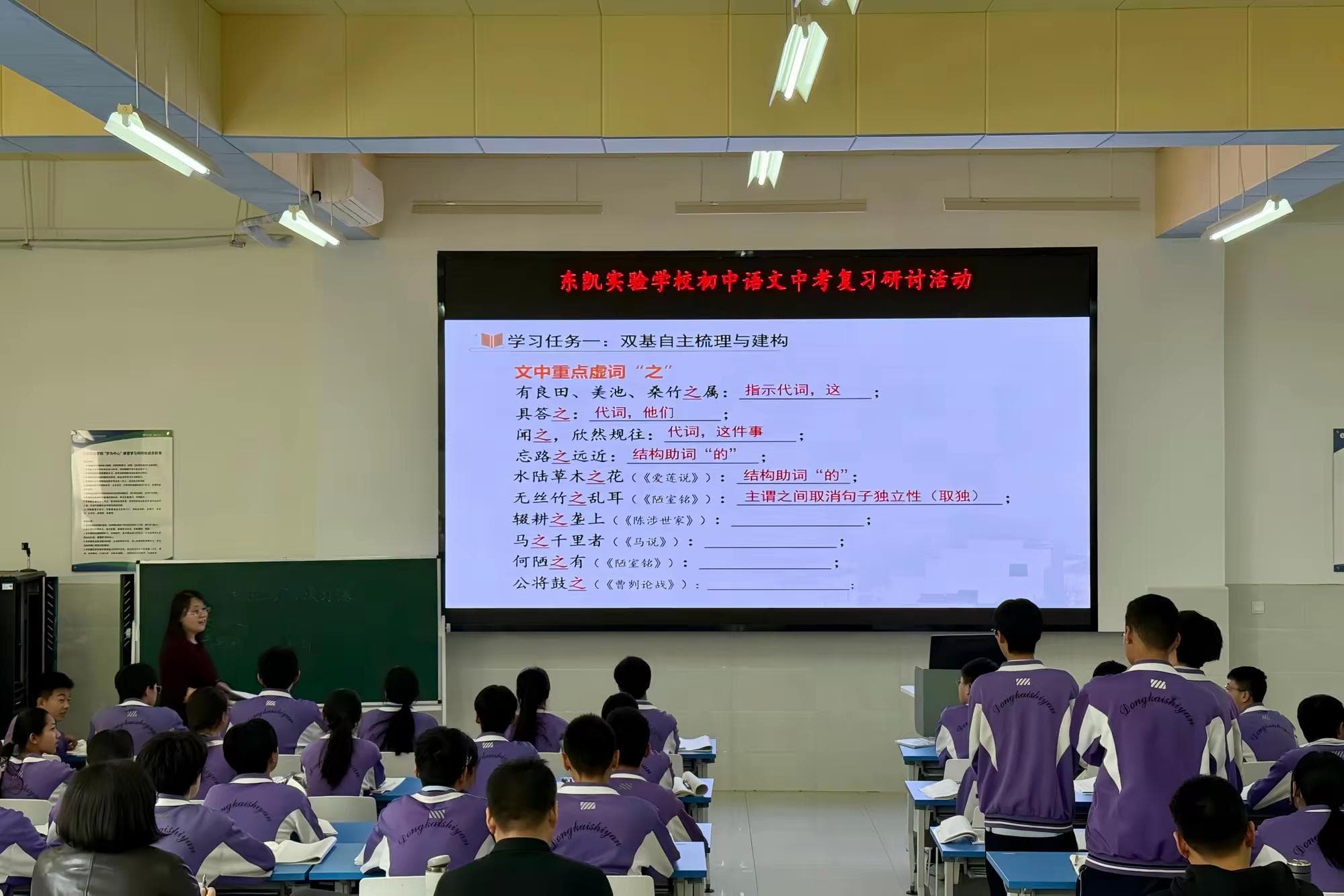 4月2日,初中部开展毕业班中考复习研讨活动。刘海英老师执教《桃花源记》复习课,依托学历案与学共体模式,组织学生自主、合作、探究性学习。王义燕老师分析近年中考试题,汇报备考策略。教研室陈雪峰副主任作《语文中考试题与备考》报告,结合考点分布细致剖析学生答题中的问题,阐明中考命题原则与依据,强调课标的重要性,并提出切实可行的复习建议。