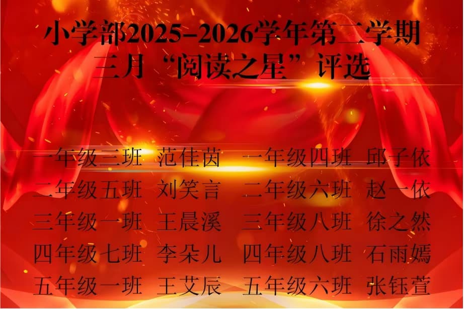 本周,小学部开展了三月阅读之星的评选表彰活动,通过表扬先进,推荐阅读书目,介绍阅读方法,培养学生良好的阅读习惯,掌握有效的阅读方法,推动学校全学科阅读要求的落实。